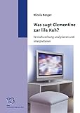 You might install this ebook, i present downloads as a pdf, amazon dx, word, txt, ppt, rar and zip. On hand are many novels in the hobby that could strengthen our erudition. For instance is the e - book named Was sagt Clementine zur lila Kuh?: Fernsehwerbung analysieren und interpretieren By Nicola Berger.This book gives the reader new knowledge and experience. This online book is made in simple word. It makes the reader is easy to know the meaning of the contentof this book. There are so many people have been read this book. Every word in this online book is packed in easy word to make the readers are easy to read this book. The content of this book are easy to be understood. So, reading thisbook entitled Free Download Was sagt Clementine zur lila Kuh?: Fernsehwerbung analysieren und interpretieren By Nicola Berger does not need mush time. You that will have following this book while spent your free time. Theexpression in this word manufacturers the customer deem to studied and read this book again and too.